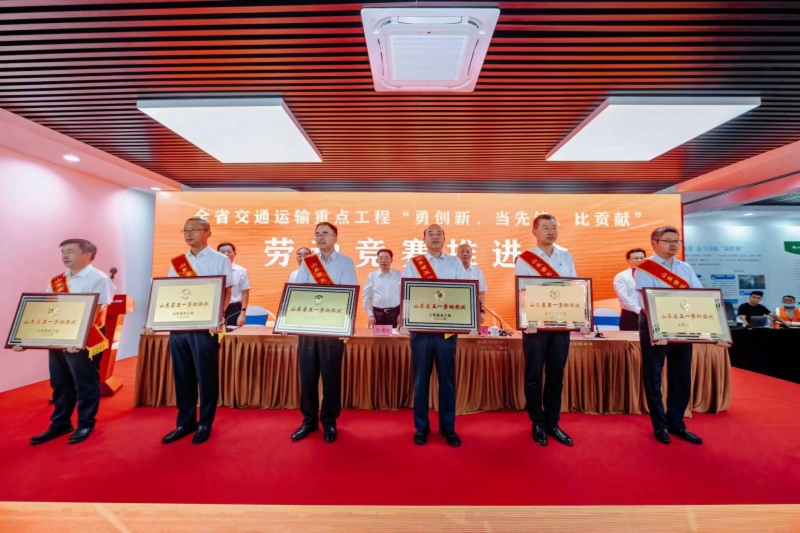7月6日上午,全省交通運(yùn)輸重點(diǎn)工程“勇創(chuàng)新、當(dāng)先鋒、比貢獻(xiàn)”勞動(dòng)競(jìng)賽推進(jìn)會(huì)在濟(jì)南市長(zhǎng)清區(qū)舉行。集團(tuán)黨委副書記、總經(jīng)理王基全參加大會(huì),并代表集團(tuán)上臺(tái)領(lǐng)取了山東省五一勞動(dòng)獎(jiǎng)狀。