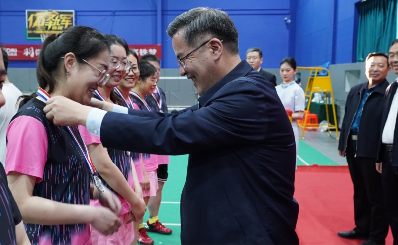 高燕在閉幕式上講話,向取得優(yōu)異成績的代表隊(duì)表示祝賀,向所有運(yùn)動員的奮勇拼搏、裁判員的公正評判、大賽組委會的精心組織、籌備組工作人員的默默奉獻(xiàn)表示贊揚(yáng)和慰問。她強(qiáng)調(diào),本屆羽毛球比賽是今年集團(tuán)舉辦的第一場大型群眾性文體活動,各代表隊(duì)在比賽期間充分發(fā)揚(yáng)“頑強(qiáng)拼搏、團(tuán)結(jié)協(xié)作”的運(yùn)動精神,賽出了水平,更賽出了風(fēng)格,充分展示了鐵投人朝氣蓬勃、昂揚(yáng)向上的精神風(fēng)貌。希望大家在今后的工作和生活中,繼續(xù)發(fā)揚(yáng)拼搏精神,以飽滿的熱情、昂揚(yáng)的斗志,為集團(tuán)高質(zhì)量發(fā)展努力奮斗!隨后,高燕、竇玉碩等領(lǐng)導(dǎo)向各代表隊(duì)頒發(fā)了獎(jiǎng)牌和獎(jiǎng)杯,并與大家合影留念。