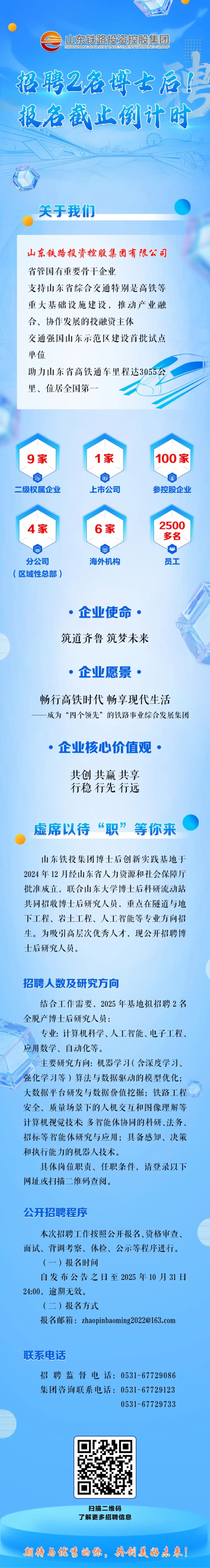 本月底報名截止!山東鐵投集團招聘2名博士后研究人員