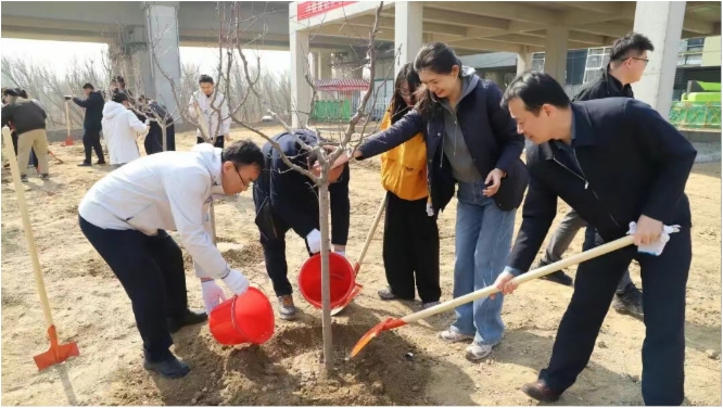 上午11時(shí),植樹活動在建設(shè)中的惠民站啟動。大家按照片區(qū)劃分“責(zé)任林”,共同揮鍬培土、栽植樹苗、澆水灌溉,確?!霸砸豢?、活一棵”。經(jīng)過1小時(shí)的勞動,幾十株白皮松、櫻花樹等在站區(qū)旁“安家落戶”,展現(xiàn)出勃勃生機(jī)。