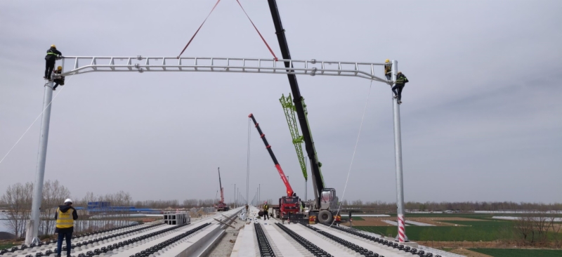 隨著疫情防控形勢(shì)的明顯好轉(zhuǎn),國(guó)家及山東省發(fā)出了關(guān)于國(guó)家重點(diǎn)建設(shè)項(xiàng)目、重點(diǎn)基礎(chǔ)交通設(shè)施項(xiàng)目加快復(fù)工復(fù)產(chǎn)的號(hào)召。承擔(dān)濰萊高鐵“四電”工程任務(wù)的中鐵武漢電氣化局集團(tuán)濰萊高鐵項(xiàng)目部,提前組建接觸網(wǎng)作業(yè)隊(duì),制定詳細(xì)的施工方案及安全應(yīng)急預(yù)案,正式施工前進(jìn)行了2次硬橫梁起、運(yùn)、吊裝演練。3月27日上午開(kāi)工前,技術(shù)、安質(zhì)部門(mén)現(xiàn)場(chǎng)對(duì)施工人員進(jìn)行技術(shù)交底,確保了第一組硬橫梁一次性安裝成功、施工安全。監(jiān)理單位、施工單位相關(guān)負(fù)責(zé)人參加了全線首組硬橫梁的安裝。截至當(dāng)天15時(shí),濰萊高鐵王伯村線路所4組接觸網(wǎng)硬橫全部安裝完成。