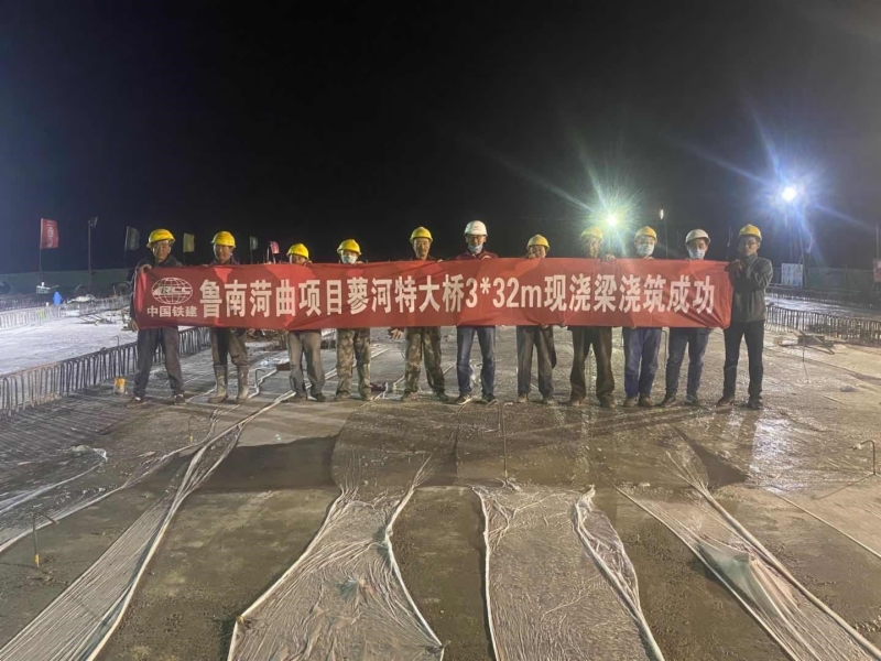 5月13日凌晨4點(diǎn),經(jīng)過45小時(shí)連續(xù)奮戰(zhàn),魯南高鐵蓼河特大橋82#-85#墩3*32.7m道岔現(xiàn)澆梁順利完成澆筑。