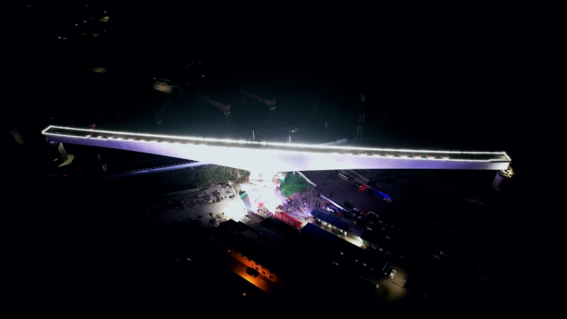 6月9日0時(shí)23分,萊榮高鐵跨青榮城際鐵路(116米+116米)轉(zhuǎn)體橋緩慢轉(zhuǎn)動(dòng),在青榮城際鐵路上空實(shí)現(xiàn)精準(zhǔn)對(duì)接,萊榮高鐵架梁通道上關(guān)鍵控制性工程順利合龍,為全線按期建成通車奠定了堅(jiān)實(shí)基礎(chǔ)。