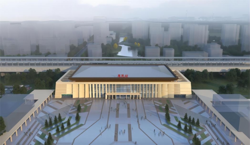 惠民站設(shè)計(jì)以“兵圣故里,雄闊惠民”為概念,車站設(shè)兩座凈寬10m的進(jìn)、出站通道,兩座長(zhǎng)450m,寬12m漸變至9.05m的島式站臺(tái),線側(cè)下式站型,雨棚覆蓋面積10547㎡,站房點(diǎn)建筑面積為9987㎡,建筑層數(shù)主體建筑地上一層,兩側(cè)局部設(shè)置二層夾層,地下局部一層。建筑總高度為23.45m,最高聚集人數(shù)為800人,站房主體結(jié)構(gòu)計(jì)劃2025年6月完工。