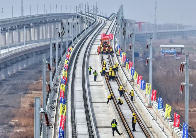 由山東鐵投集團(tuán)建設(shè)的濟(jì)濱高鐵是津?yàn)H高鐵及山東省快速鐵路網(wǎng)魯北通道的重要組成部分,也是國(guó)家鐵路網(wǎng)“八縱八橫”高速鐵路網(wǎng)主骨架京滬、青太通道的重要聯(lián)絡(luò)線,正線全長(zhǎng)145.299公里,設(shè)計(jì)時(shí)速350公里,全線設(shè)濟(jì)南東、遙墻機(jī)場(chǎng)、濟(jì)陽(yáng)、商河、惠民、濱州6座車站。全線鋪軌施工291.36公里,其中有砟軌道52.22公里、無(wú)砟軌道239.14公里;鋪設(shè)道岔66組,其中有砟道岔27組、無(wú)砟道岔39組。預(yù)計(jì)今年6月中旬完成全線鋪軌作業(yè)。