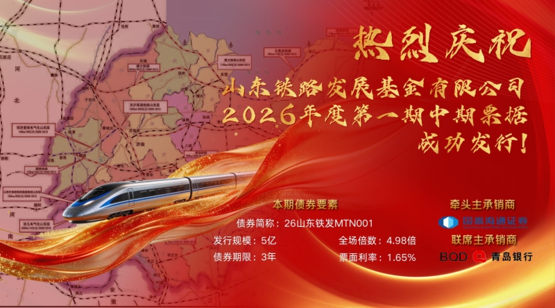 3月13日,山東鐵投集團(tuán)權(quán)屬山東鐵路發(fā)展基金有限公司2026年度第一期中期票據(jù)(26山東鐵發(fā)MTN001,102680825.IB)成功發(fā)行,本次發(fā)行規(guī)模5億元,期限3年,票面利率1.65%,全場(chǎng)認(rèn)購(gòu)倍數(shù)4.98倍。該利率不僅刷新公司直接融資票面利率歷史新低,更創(chuàng)下山東省屬企業(yè)同類(lèi)融資產(chǎn)品利率新低。