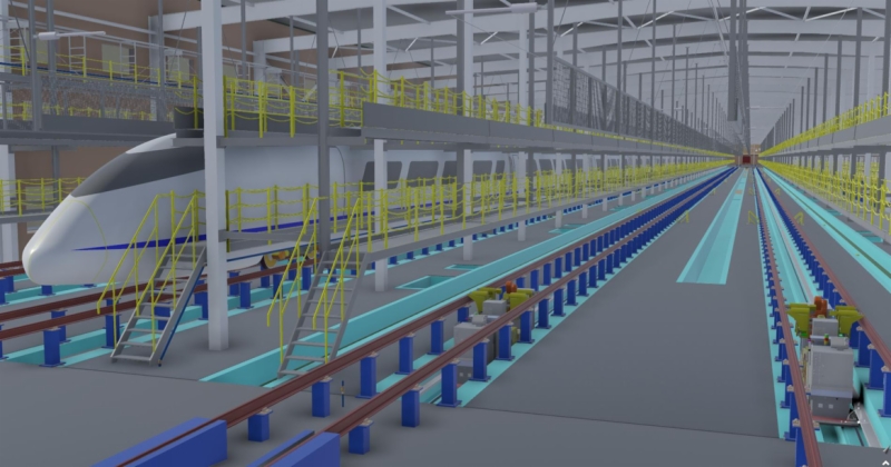 項目核心工程——六線檢查庫總建筑面積33044.83平方米,內設6條動車檢查庫線、30條存車線,另預留檢查庫線4條、存車線13條,相當于一座可同時容納數(shù)十組動車組列車進行檢修作業(yè)的巨型“高鐵4S店”。庫內配備智能檢測系統(tǒng)、自動化清洗設備、綜合維修平臺等先進設施,可實現(xiàn)動車組日常檢修、故障排查、車體清潔、部件更換等全流程高效智慧作業(yè),大幅縮短列車周轉時間,提升運營效率。