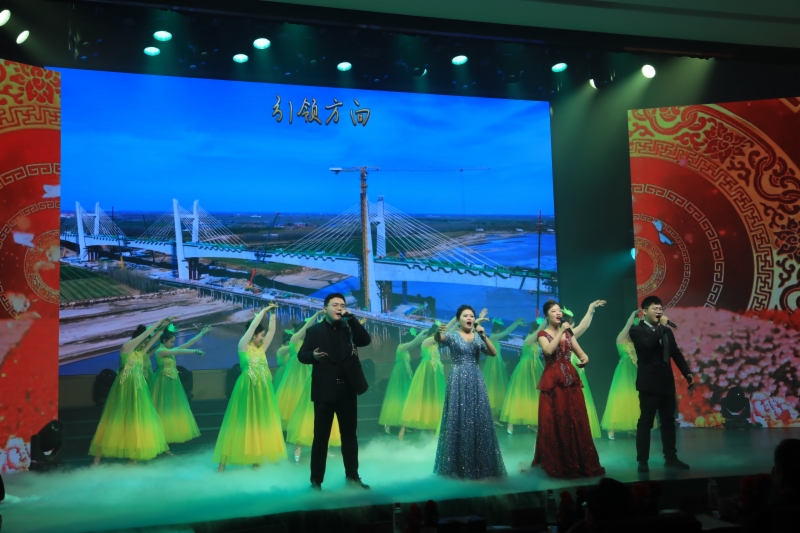 最后,聯(lián)歡會(huì)在歌舞《陽(yáng)光路上》的恢弘旋律中圓滿(mǎn)落幕,全體演職人員與現(xiàn)場(chǎng)觀眾共同唱響對(duì)新年的美好祝福。集團(tuán)領(lǐng)導(dǎo)班子成員等到場(chǎng)領(lǐng)導(dǎo)走上舞臺(tái)與演職人員合影留念。