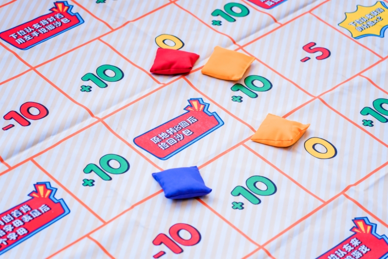 數(shù)算奪魁。參賽者依次排隊,每人5個沙包,投擲沙包獲得相應(yīng)分值,5個加起來累計超過20分即為挑戰(zhàn)成功,蓋紅色通關(guān)印章;挑戰(zhàn)失敗,蓋藍(lán)色章。