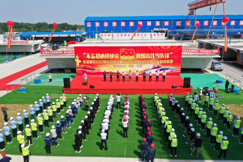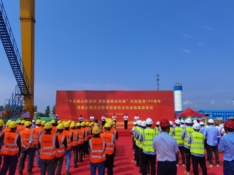 6月26日,山東重點(diǎn)鐵路工程項(xiàng)目濰煙高鐵、萊榮高鐵在煙臺(tái)和威海兩地同時(shí)舉行慶祝建黨100周年黨建主題活動(dòng)暨首榀箱梁架設(shè)活動(dòng)。