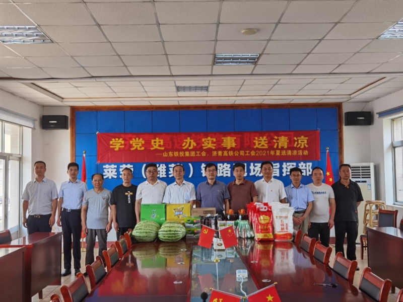 為貫徹落實各級工會關于開展好“送清涼”活動的有關要求,切實維護好職工安全健康權益,體現(xiàn)集團和公司工會對廣大職工的關愛,同時推動黨史學習教育深入開展,學黨史、辦實事,7月14日-16日,濟青高鐵公司工會聯(lián)合集團工會,赴萊榮、濰煙高鐵建設一線開展“學黨史、辦實事、送清涼”活動。集團公司副總經(jīng)理竇玉碩、工會主席張慶星,濟青公司黨委副書記、工會主席張富兵帶隊參加活動。