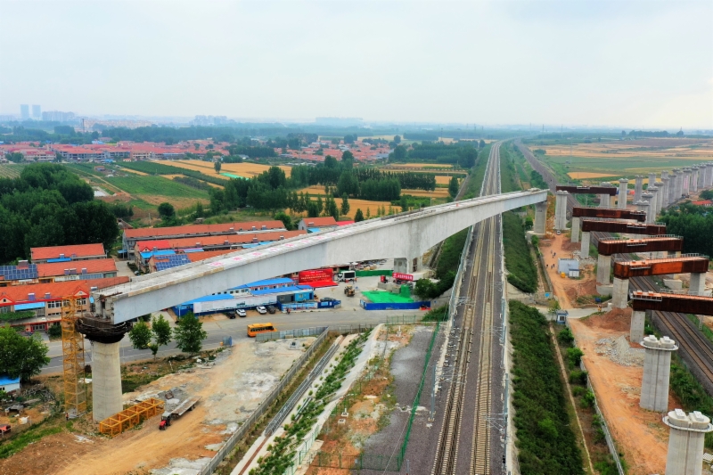 這座轉(zhuǎn)體橋東接建設(shè)中萊榮高鐵,西接濰萊高鐵,使兩條高鐵實(shí)現(xiàn)空中對接.屆時(shí),濟(jì)鄭高鐵、濟(jì)青高鐵、濰萊高鐵、萊榮高鐵四條高鐵將形成一條橫貫山東的時(shí)速350公里的快速旅客通道。