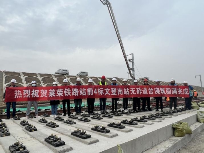 4月13日,萊榮鐵路文登南站最后一組無砟道岔順利澆筑完成,標(biāo)志著萊榮高鐵公司投資建設(shè)的萊榮鐵路全線42組無砟道岔全部施工完成,萊榮鐵路距離開通目標(biāo)更近了一步。