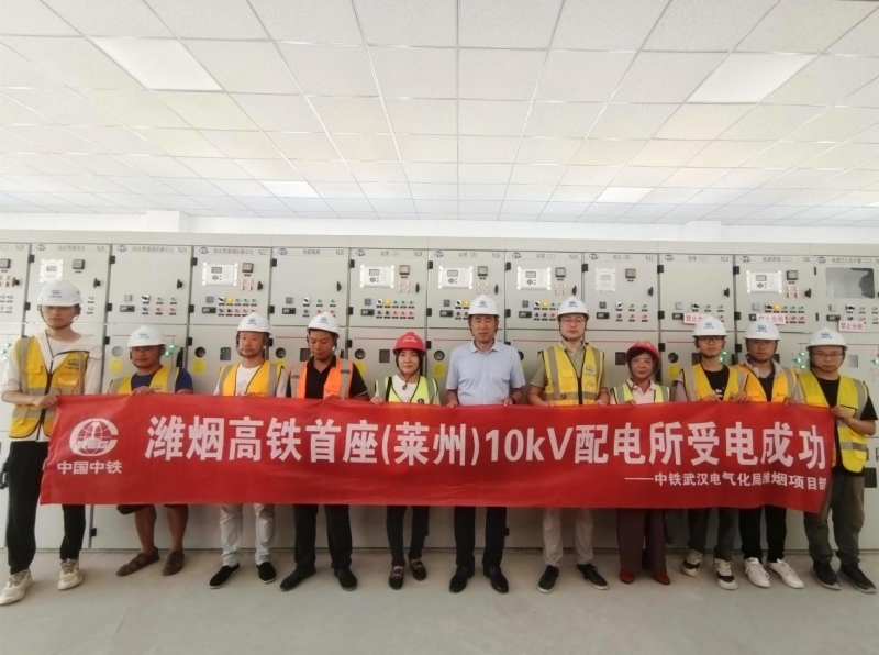 與此同時,在萊州站10KV配電所,施工人員相繼完成了電纜耐壓試驗、所內(nèi)設(shè)備電氣試驗、進線核相等操作,一次倒閘受電成功。萊州10KV配電所分別接引自國家電網(wǎng)35KV神堂變電站和110KV石都變電站兩路進線,外電源施工采用架空和高壓電纜混合線路方式。