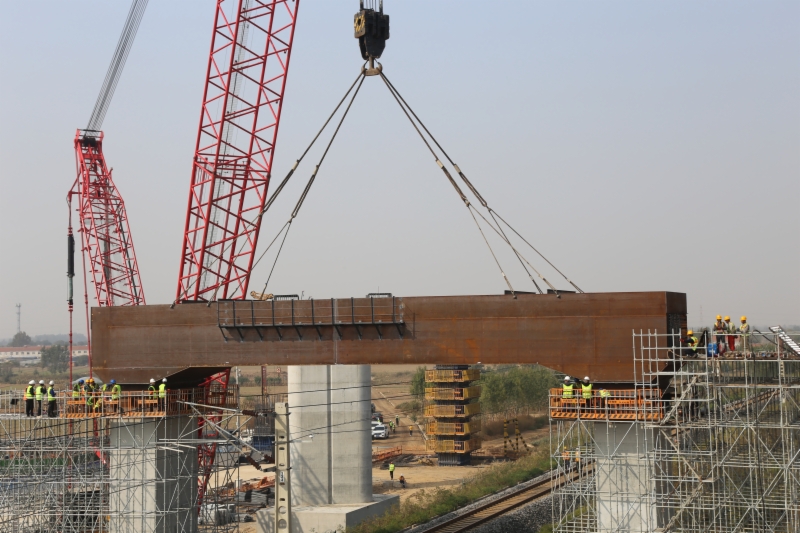 10月17日11時(shí)40分,隨著一聲“就位完畢”口令,濟(jì)濱高鐵商惠濱2號(hào)特大橋1724#墩上跨德大鐵路門式墩鋼蓋梁精準(zhǔn)吊裝就位,標(biāo)志著該標(biāo)段重難點(diǎn)控制性工程取得重大進(jìn)展,為項(xiàng)目后續(xù)架梁、鋪軌順利進(jìn)行提供堅(jiān)實(shí)保障。