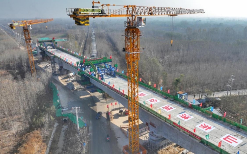 該連續(xù)梁位于濱州市惠民縣內(nèi),為(60+100+60)米連續(xù)梁結(jié)構(gòu),梁寬12.6米,全長221.5米,重1.12萬噸,采用掛籃懸臂澆筑法施工,是該標(biāo)段重點(diǎn)控制性工程。為確保連續(xù)梁施工質(zhì)量和進(jìn)度,濟(jì)濱高鐵公司和參建單位精心策劃,克服上跨施工難度大、技術(shù)要求高、質(zhì)量安全標(biāo)準(zhǔn)嚴(yán)等因素,專題研究編制施工方案,開展專項(xiàng)培訓(xùn)及技術(shù)交底,對機(jī)械設(shè)備調(diào)度、交通疏導(dǎo)、安全監(jiān)督、應(yīng)急保障措施等工作進(jìn)行精心部署。強(qiáng)化施工過程控制,安排專人對合龍段鋼筋綁扎、勁性骨架鎖定、合龍段配重等關(guān)鍵工序進(jìn)行檢查驗(yàn)收,專門選定在氣溫偏低、溫差較小的時(shí)間段進(jìn)行混凝土澆筑,確保橋梁合龍質(zhì)量達(dá)到設(shè)計(jì)標(biāo)準(zhǔn)。