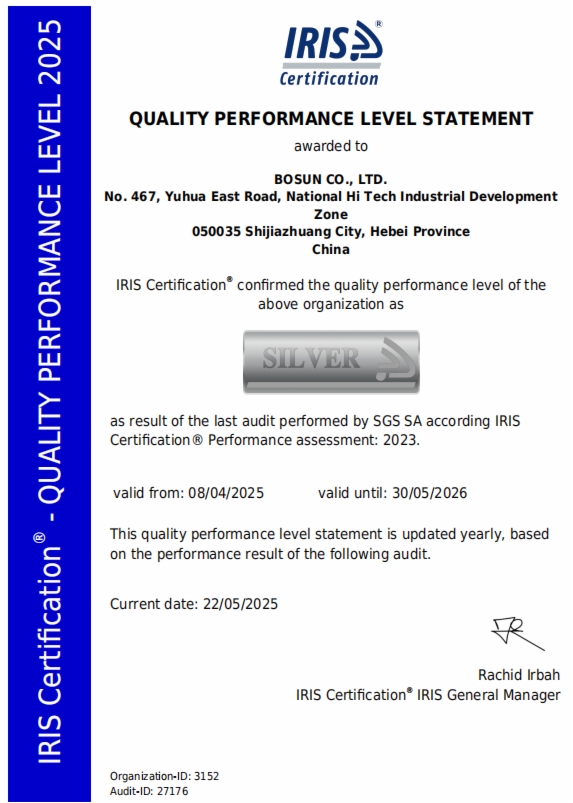 獲得IRIS銀牌認證證書,是國際權(quán)威機構(gòu)對博深股份公司閘片質(zhì)量管理體系建設成效的充分肯定,也體現(xiàn)了博深股份公司對閘片產(chǎn)品質(zhì)量始終如一的高標準追求,將大大提升博深股份公司在國內(nèi)外軌道交通行業(yè)的影響力和競爭力,助力山東鐵投集團加快推進“353”產(chǎn)業(yè)發(fā)展戰(zhàn)略尤其是高端裝備制造業(yè)高質(zhì)量發(fā)展。